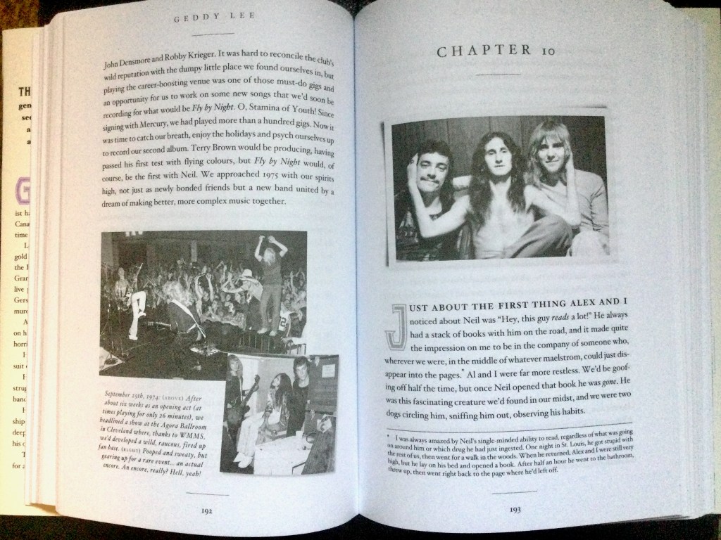 Lee can be candid. This reader and longtime Rush fan was surprised at the influence of drugs during his career. I suppose I knew the band members liked the occasional illicit drug in the early days (just listen to Caress of Steel or “A Passage to Bangkok”) but I didn’t realize how much Lee indulged in drugs, including cocaine and acid, and how long it went on for.