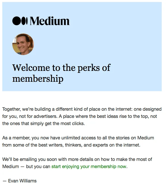 It’s not like I was unaware of the damage you caused, or the effects you were having on my behaviour. I also wasn’t solely tied to Facebook and recognized there are other companies that truly value my privacy and give me my space. Companies like Medium, for instance. With its shortcomings, I can’t help but feel good when I see this message after renewing my membership on this platform: