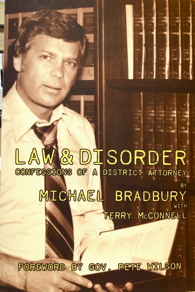 Michael Bradbury has led a helluva life and the book he wrote with Terry McConnell, Law & Disorder: Confessions of a District Attorney, tells a helluva story.